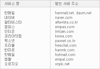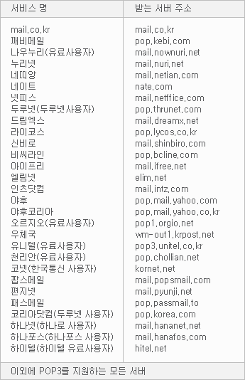 * POP나 IMAP4을 지원하지 않는 웹메일