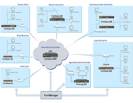 모든 FortiGate제품과 완벽하게 호환되며 SOHO에서 대규모 기업, 서비스 공급자에 |