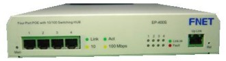 EP-400S는 POE 호환 장비 4포트를 연결할 수 있는 모델이며, 4 Ports 10/100 Mbps 자동 감지 스위치 허브가 내장 되어 있으며, Uplink 포트를 통하여 허브와 연결 되는 장비임
