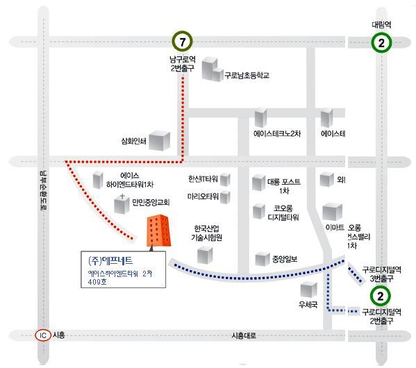 대중교통 : 지하철 2호선 구로디지털역 2,3번 출구